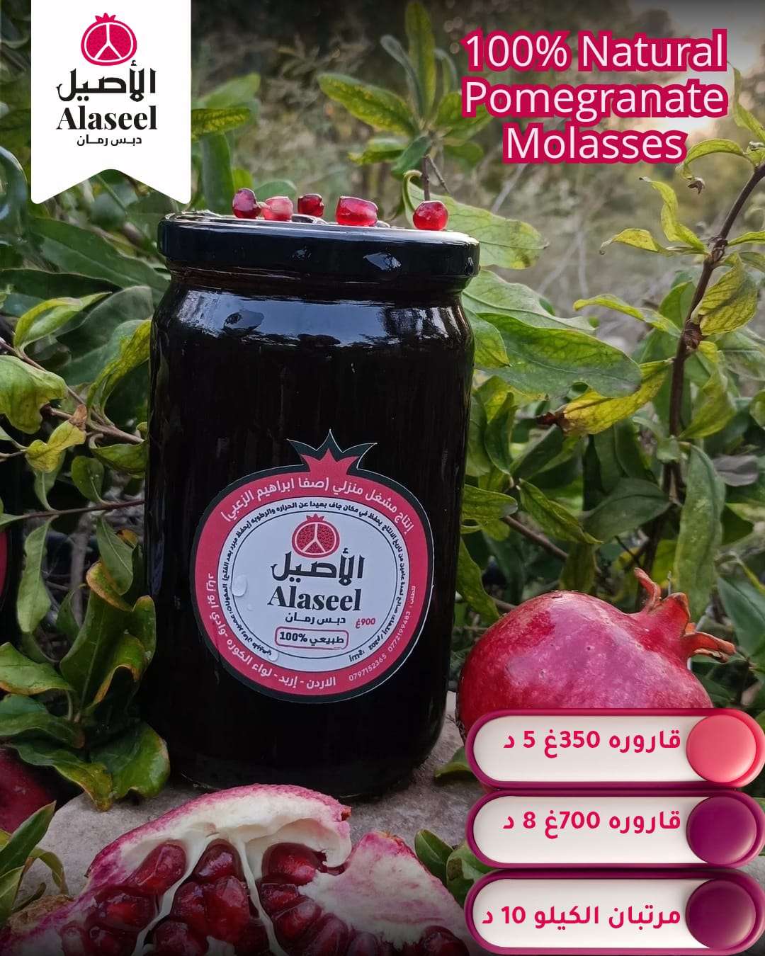 دبس رمان أصيل طبيعي 100% | بدون سكر أو مواد حافظة من مزارع إربد