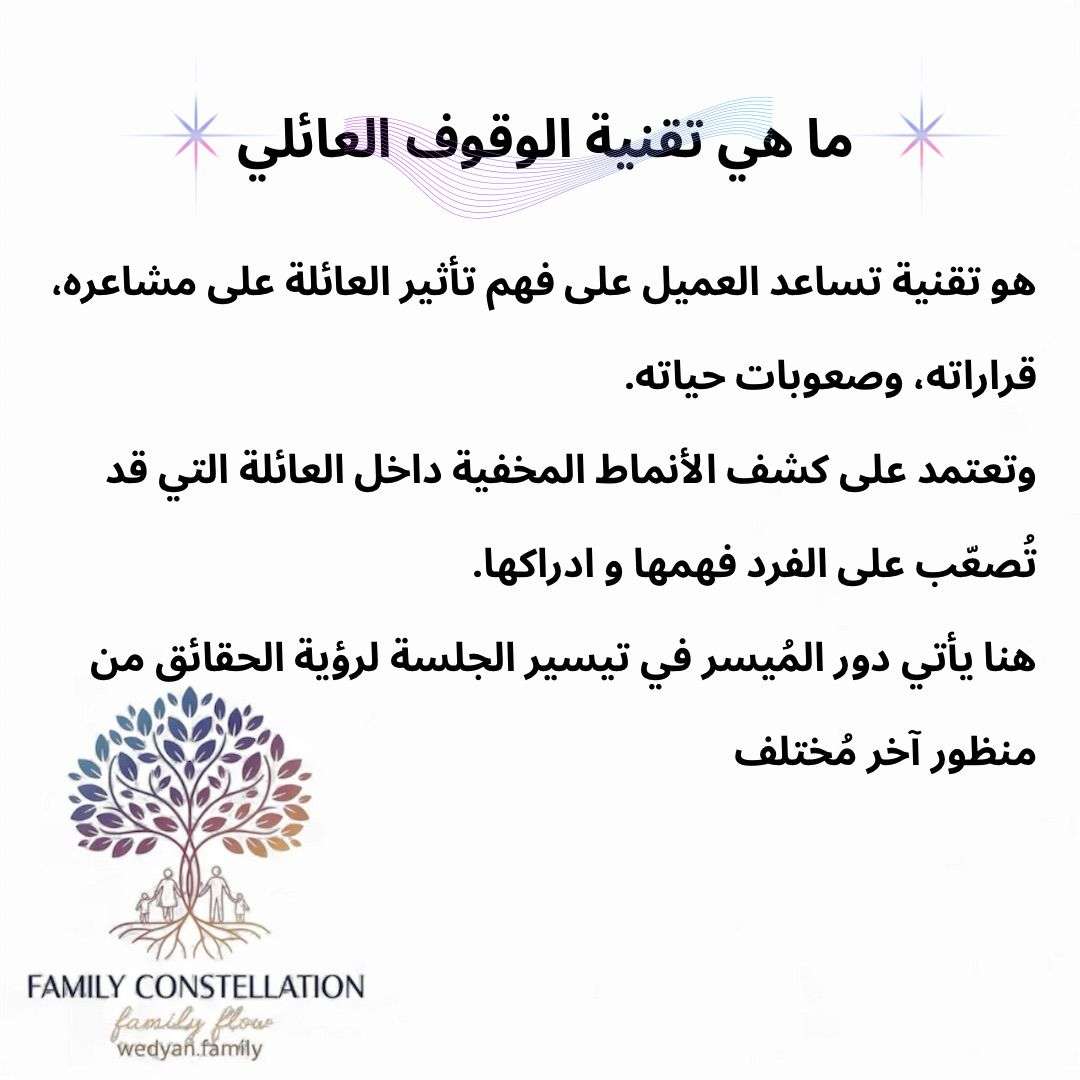 ✔ جلسات وقوف عائلي لفهم العلاقات والأنماط المتوارثة
