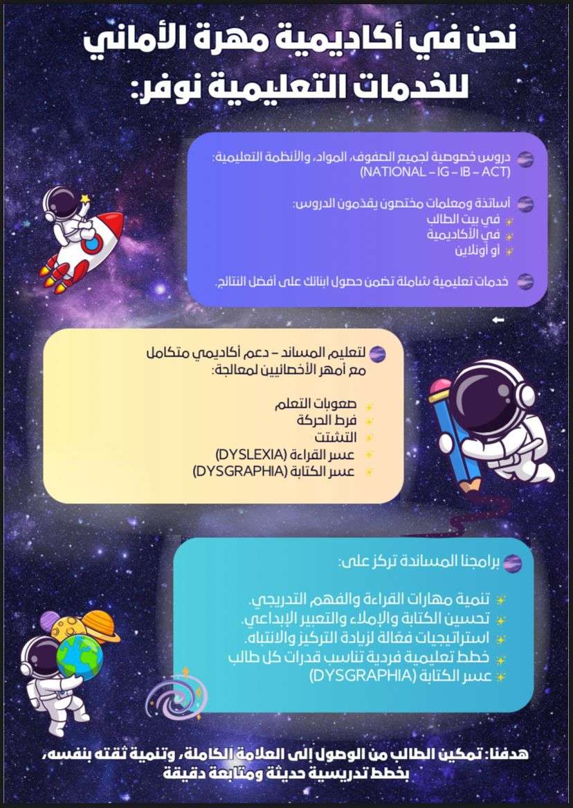 🎓 أكاديمية مهرة الأماني للدروس الخصوصية – لجميع المناهج والأنظمة التعليمية من KG حتى الجامعة
