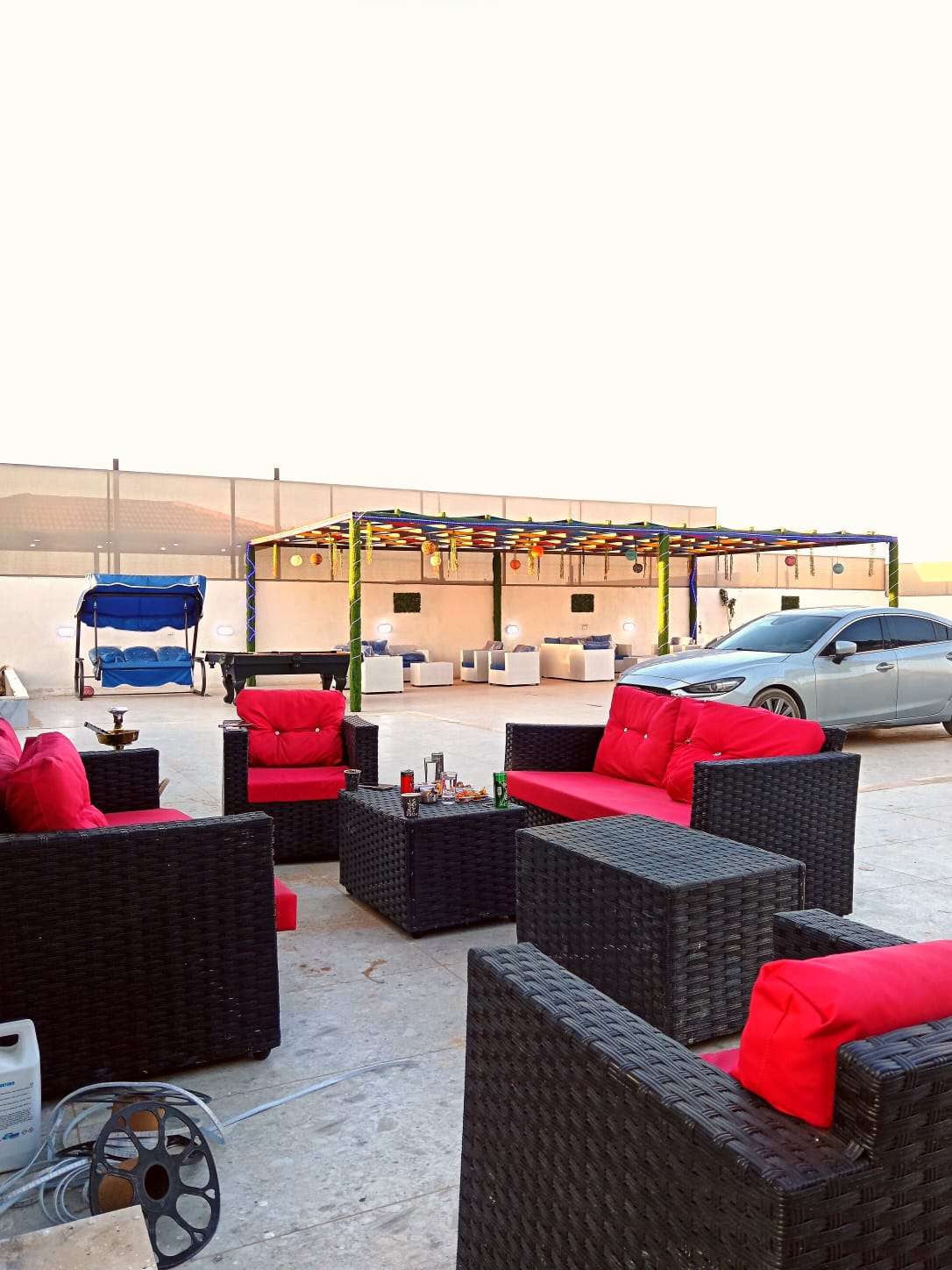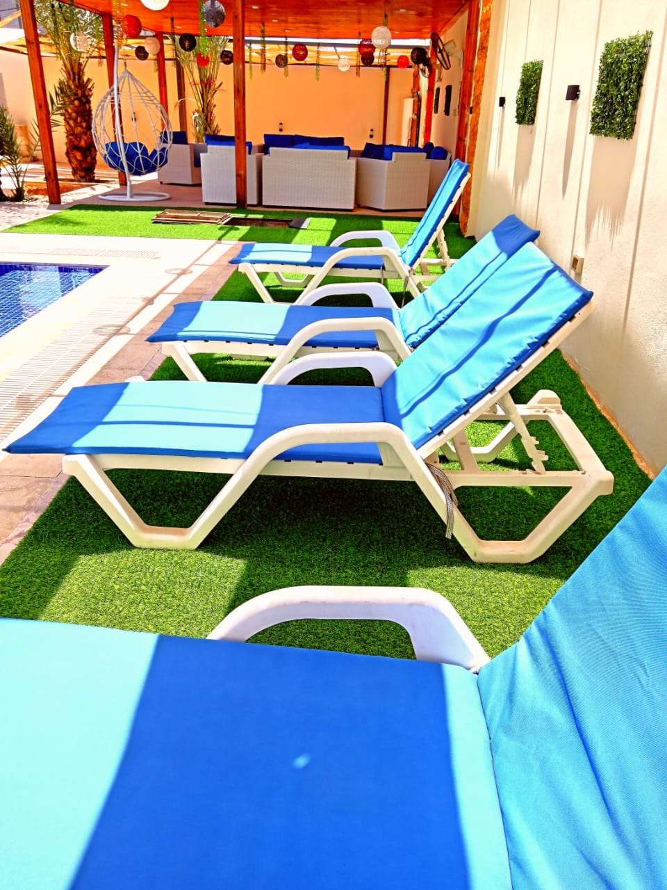 ✅ جلسات خارجية بإطلالة رائعة على المسبح + مظلات