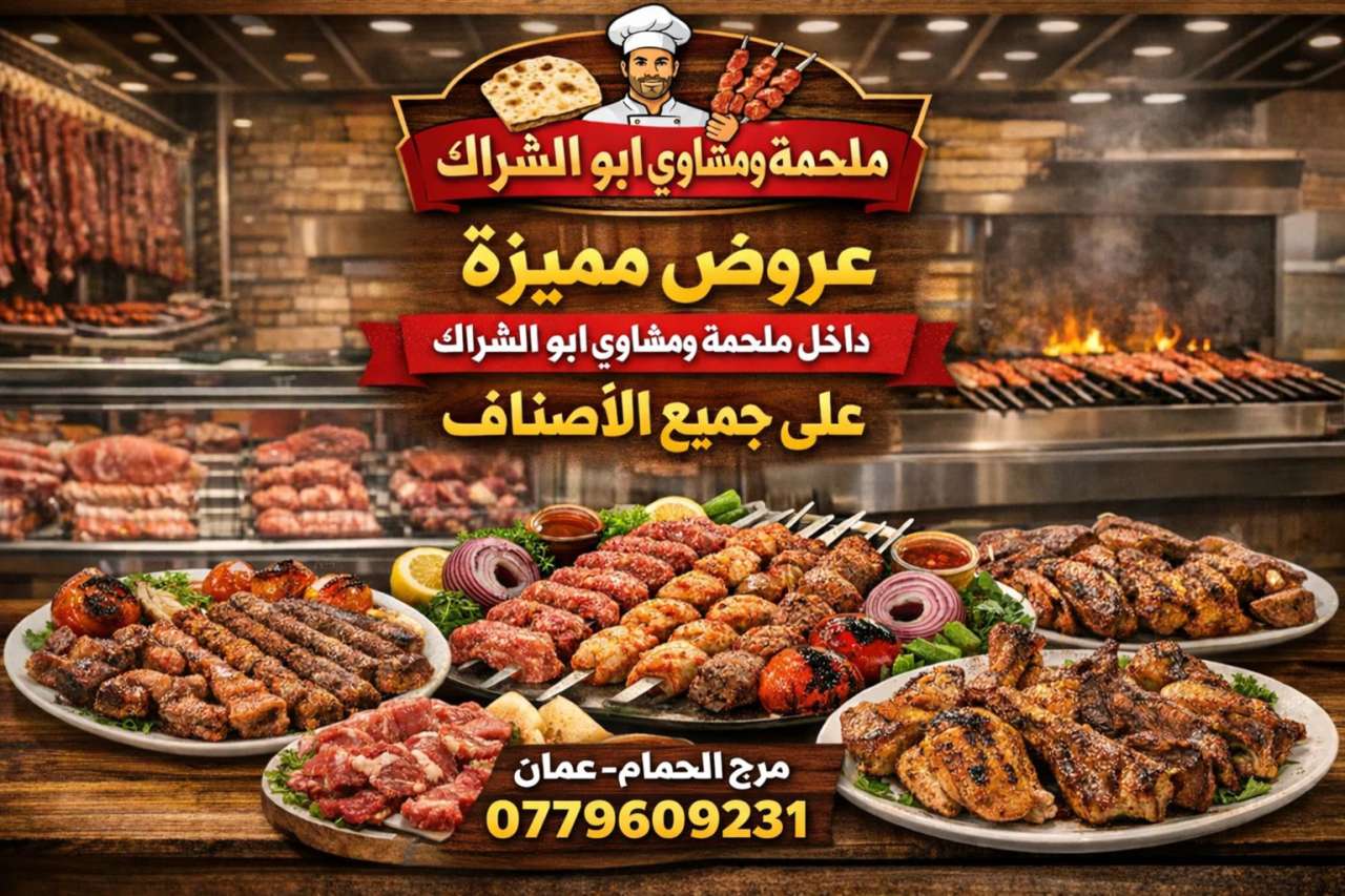 🔥 عروض مميزة في ملحمة ومشاوي أبو الشراك – مرج الحمام | عمّان 🔥