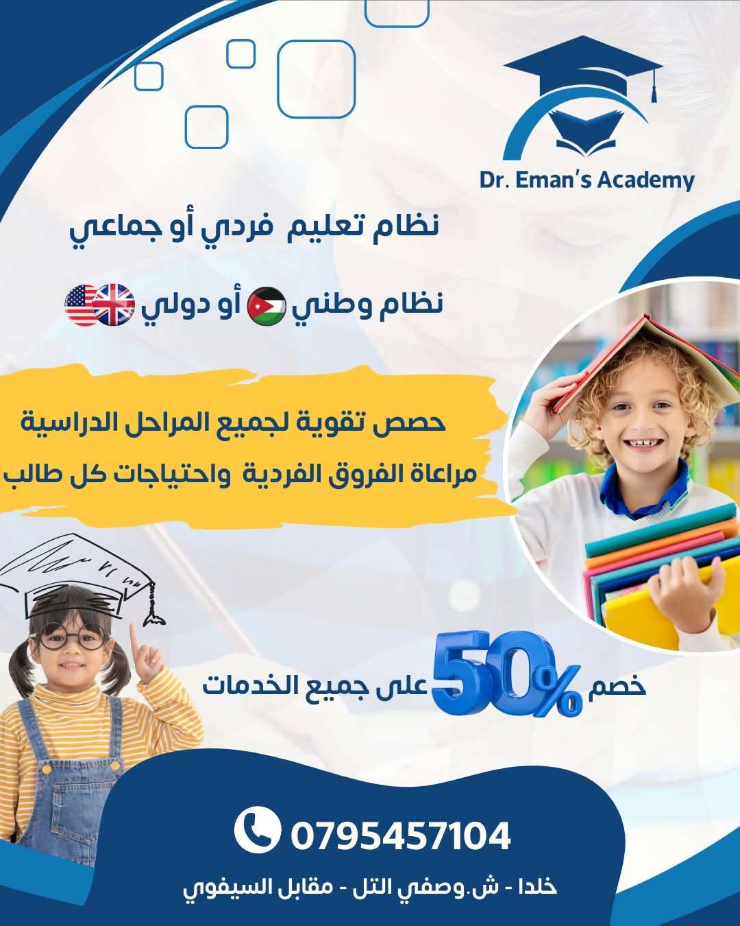 🎓 أكاديمية الدكتورة إيمان | دروس تقوية وتأسيس من الصف الأول للتوجيهي + تقوية لطلاب الجامعات والتوجيه